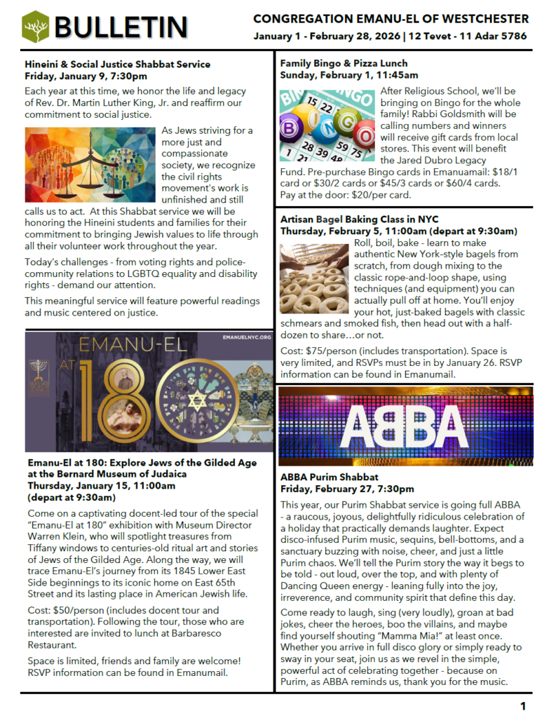 Rabbi’s Weekly Message & Emanumail